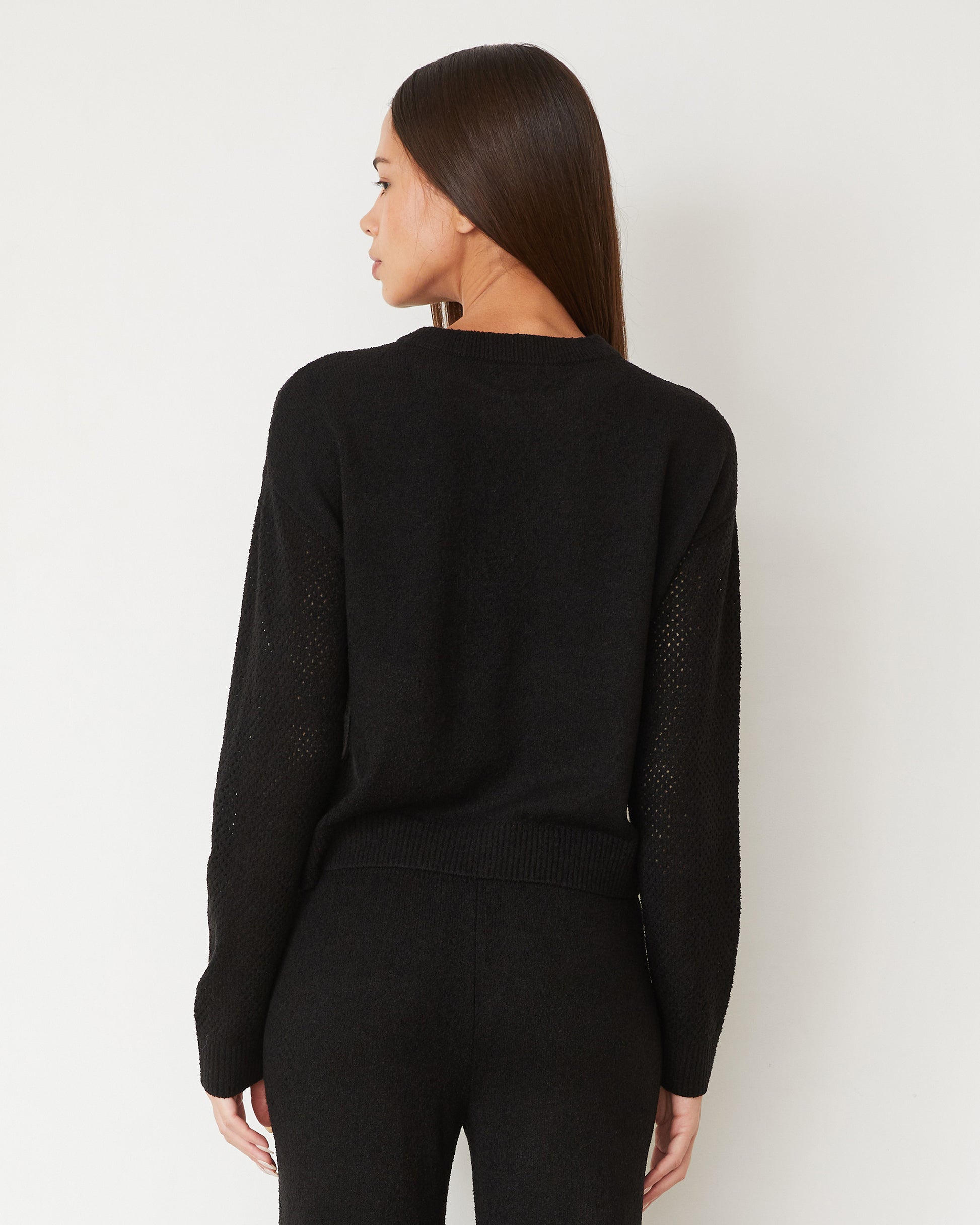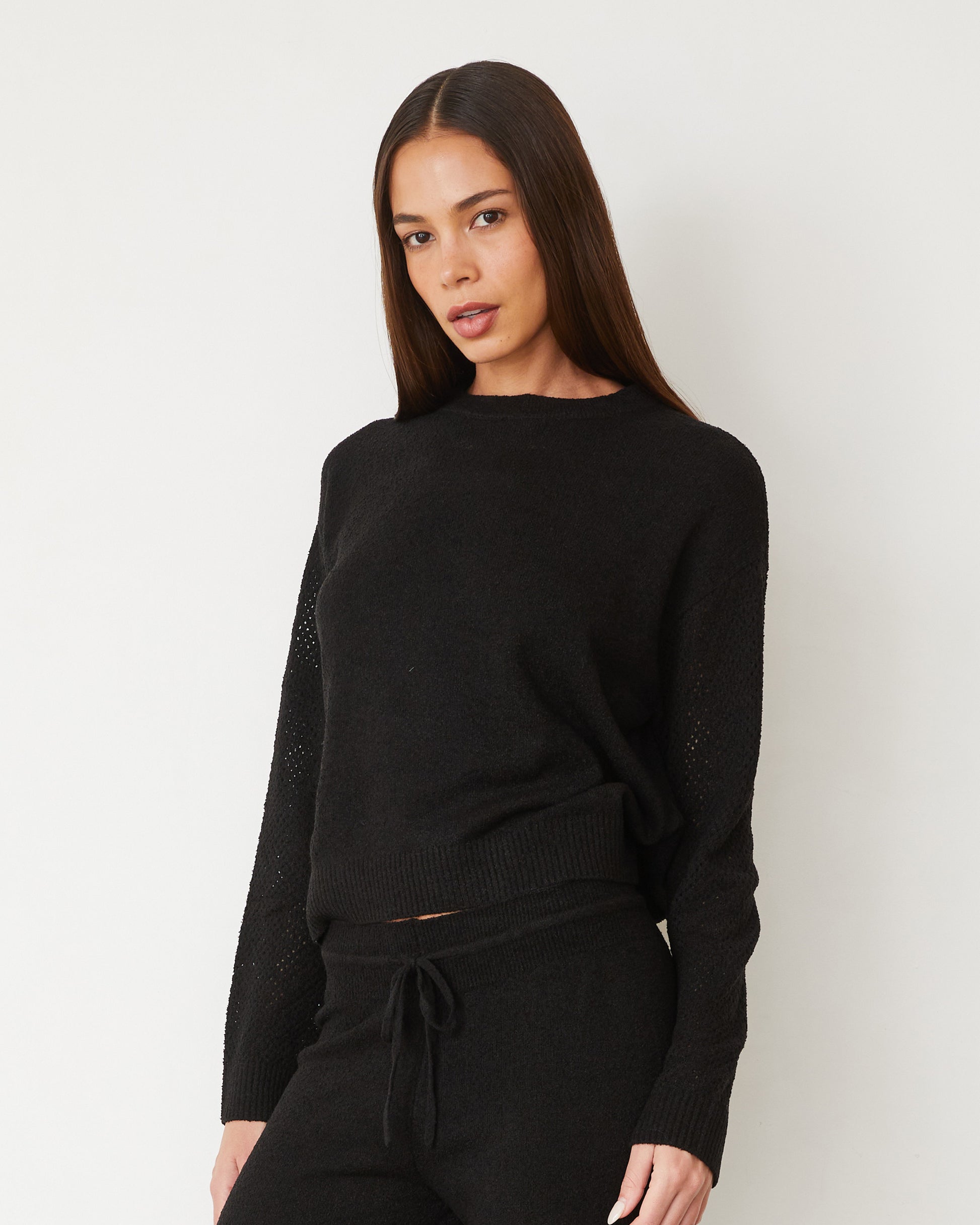 Anything but basic, our Relaxed Mesh Sleeve Sweater is the ultimate transitional piece.