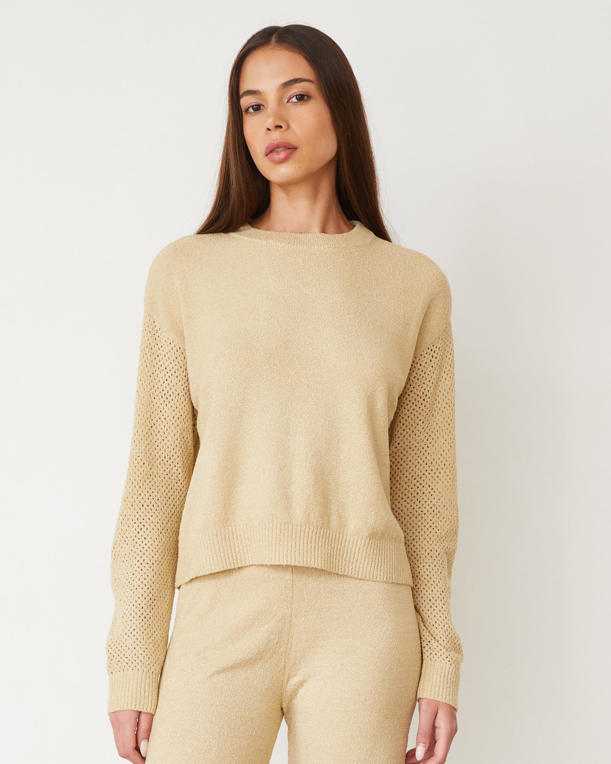 Anything but basic, our Relaxed Mesh Sleeve Sweater is the ultimate transitional piece.