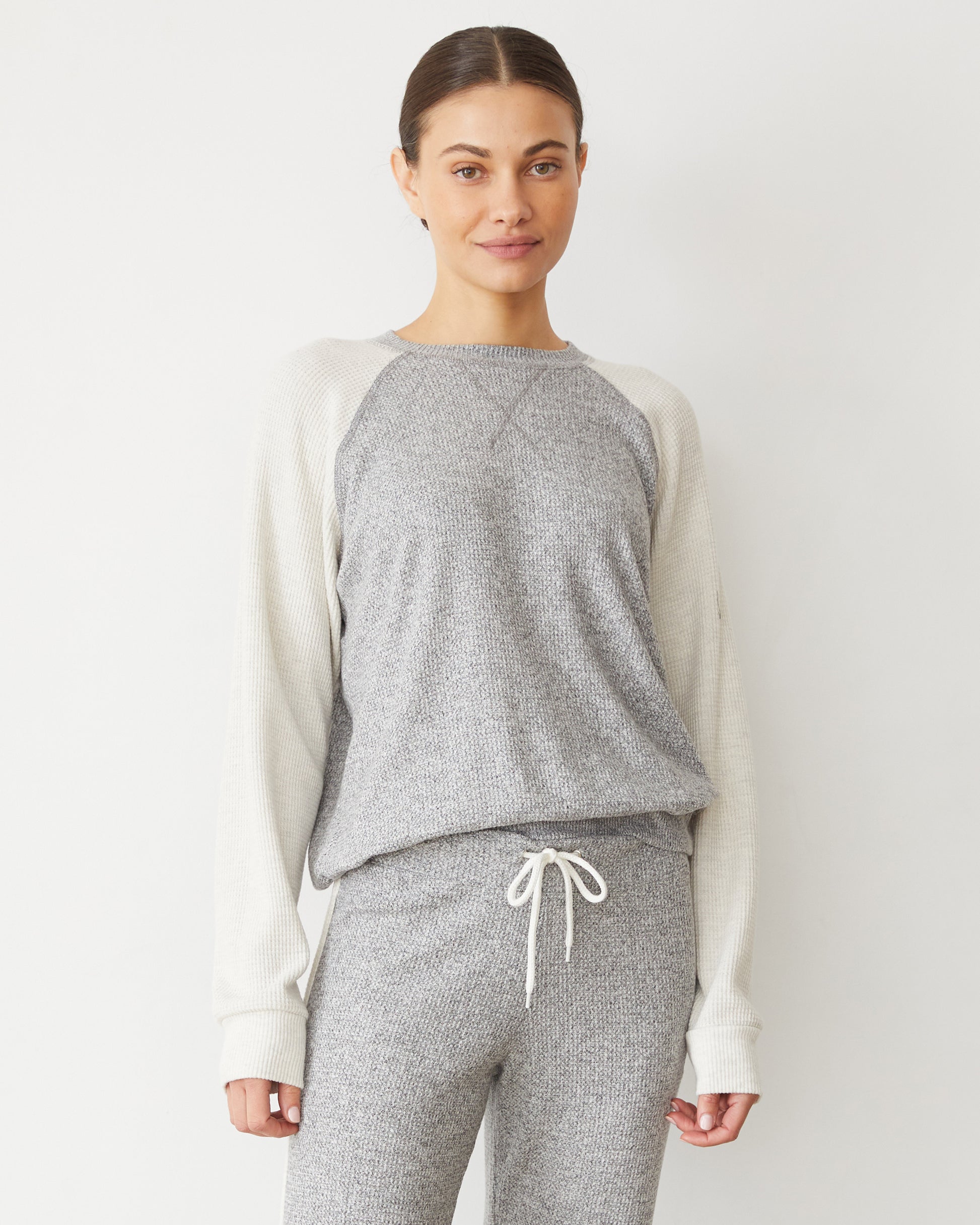 Prep your cold weather style with our Brushed Thermal Color Block Raglan, perfect for layering or wearing solo.