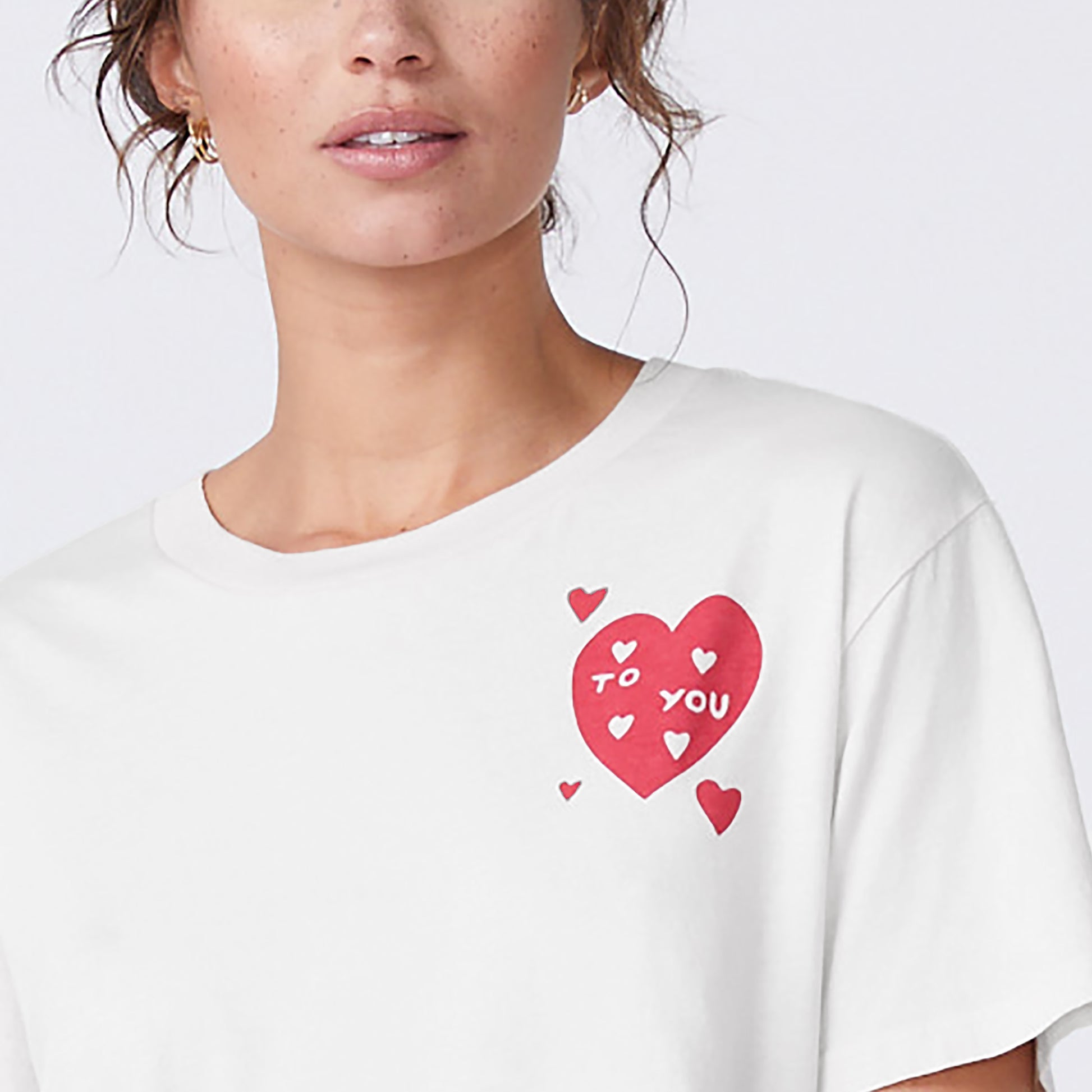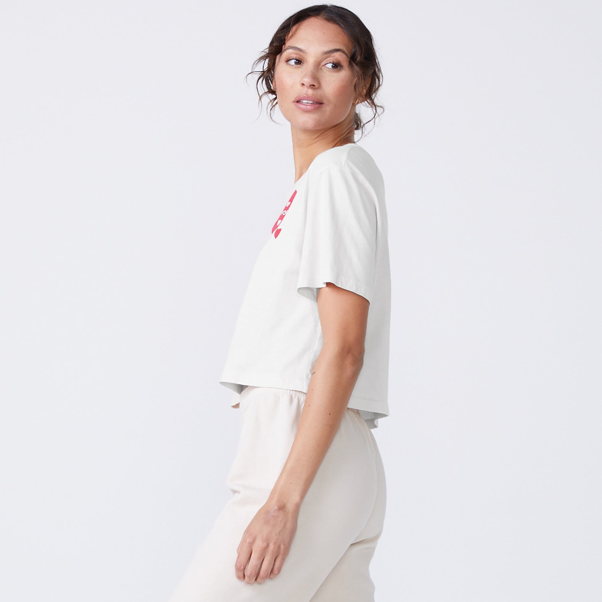 - Love is in the air. Our 50's Vintage Tee is the ultimate wardrobe staple, now with an adorable printed heart graphic. Made with a relaxed fit, crew neckline, and slight crop, this tee pairs perfectly with your favorite vintage jeans or the matching Love Letter Supersoft Fleece High Waisted Sweats.