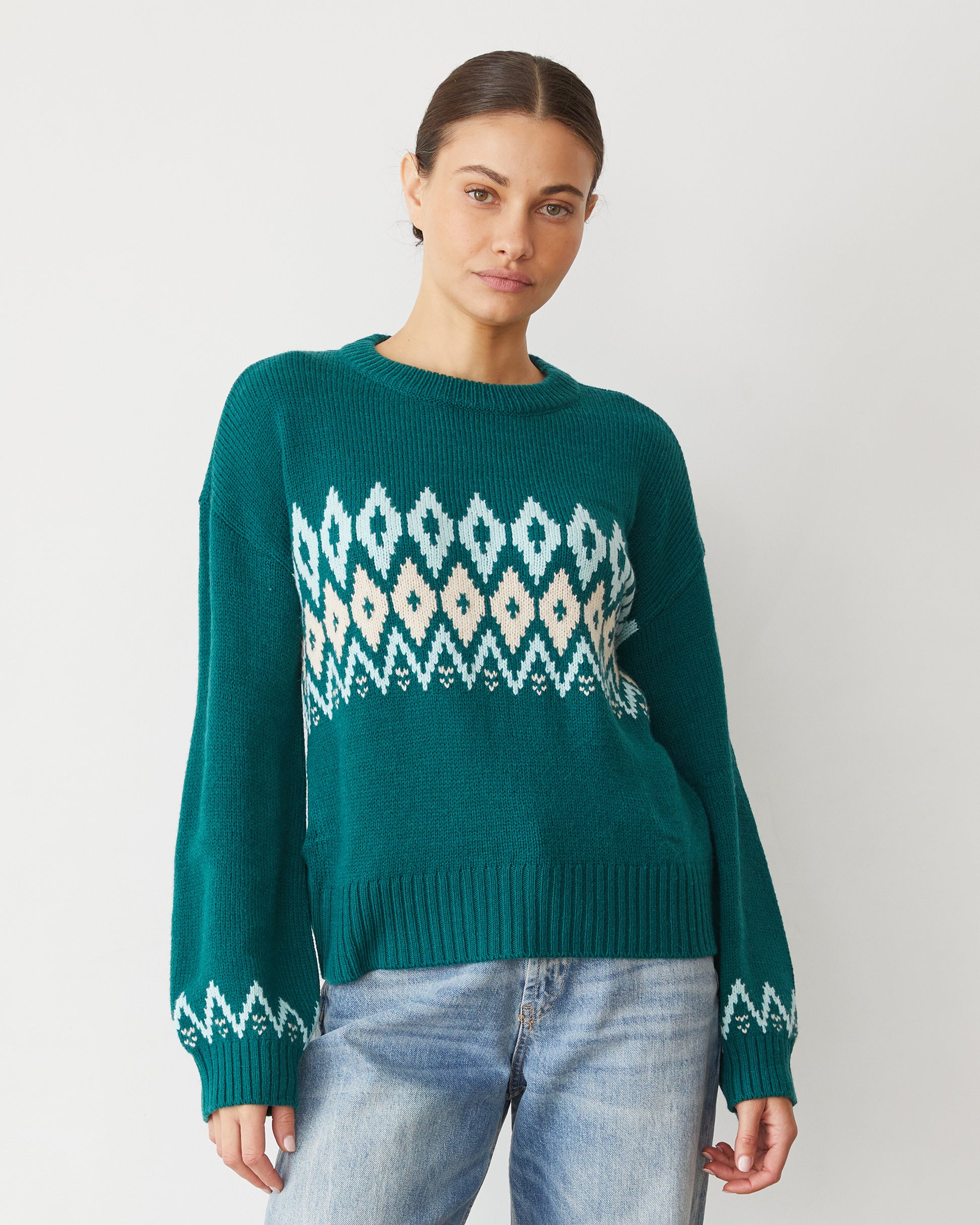 This Fair Isle Merino wool sweater pairs effortlessly with jeans for a casual outfit or can be dressed up with our Cotton Knit Patch Pocket Pant for a sophisticated winter look.