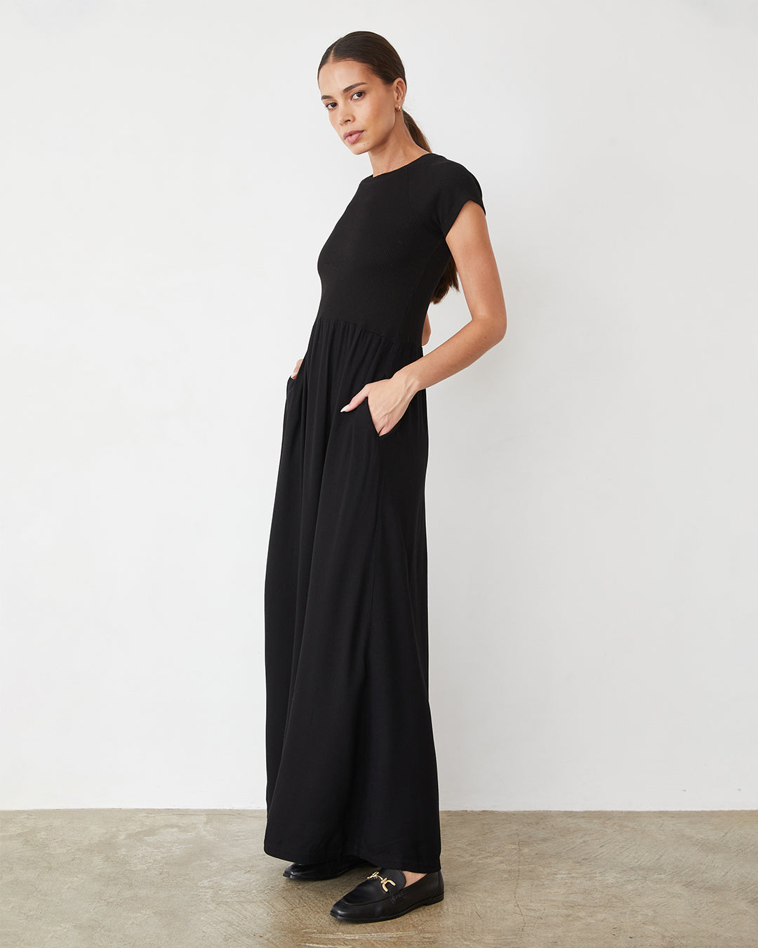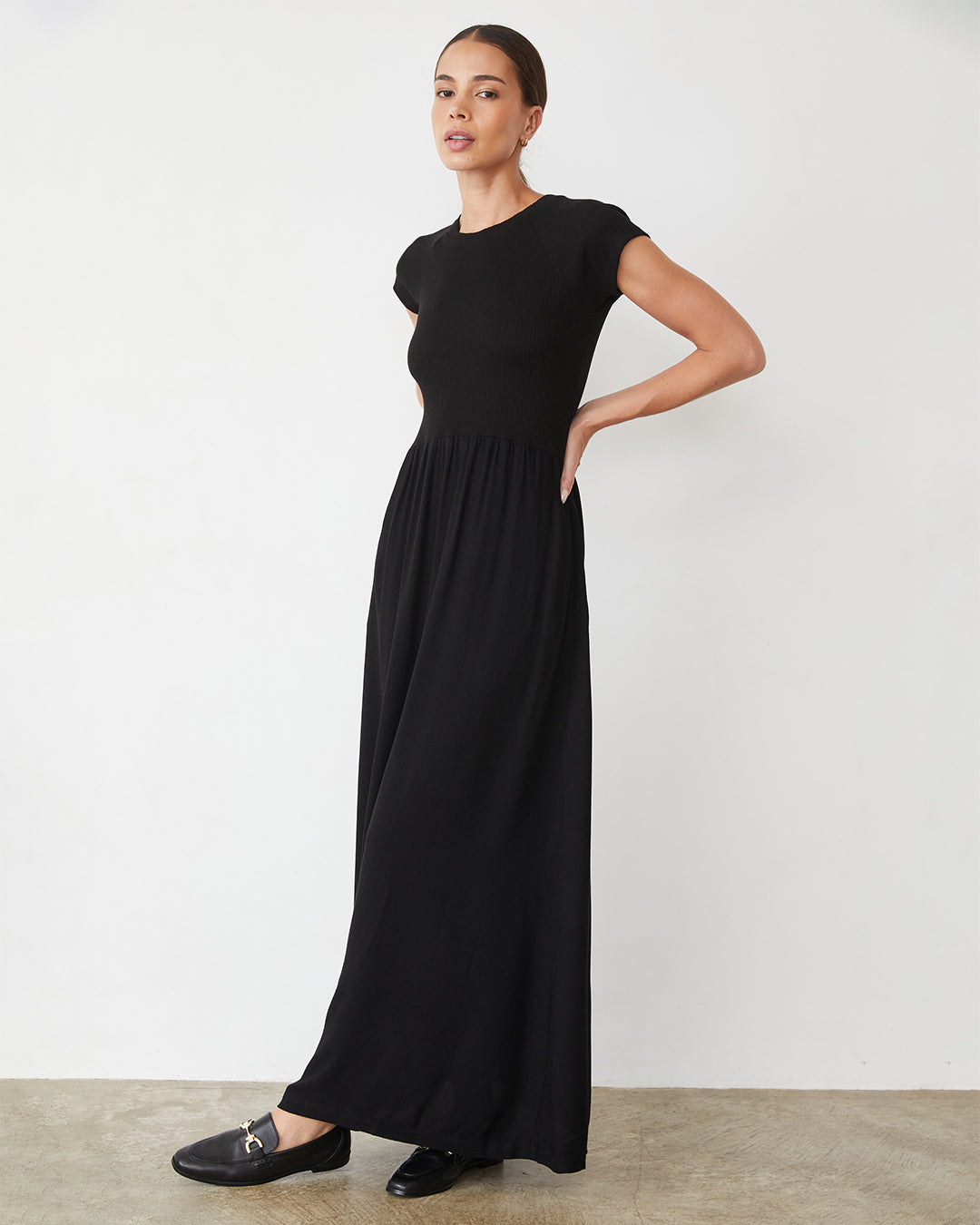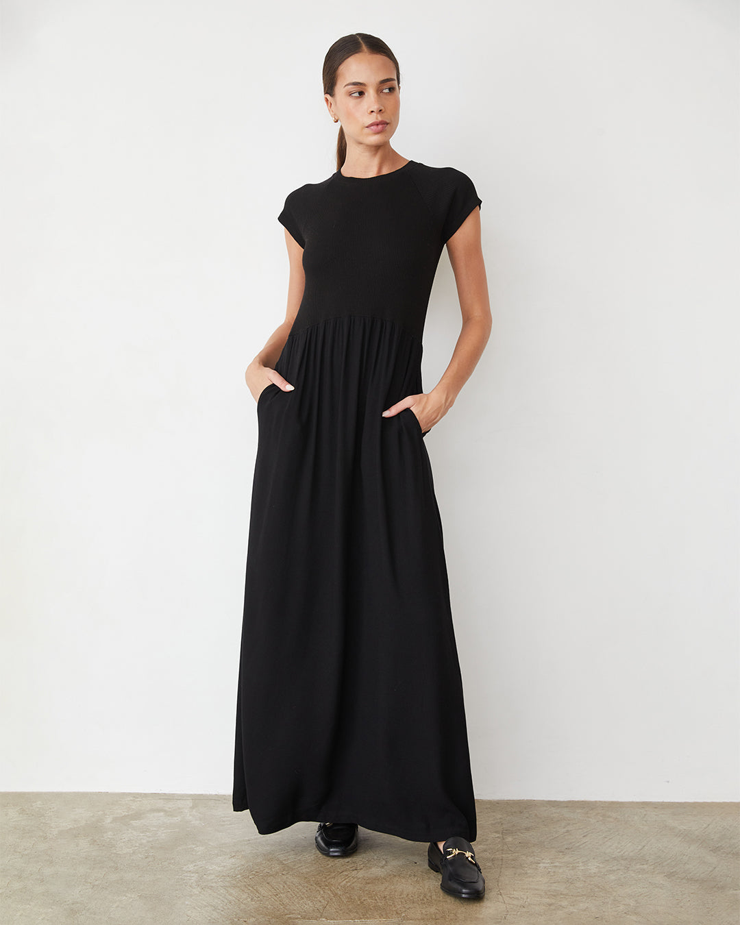 Discover the season’s most perfect piece with our Mixed Media Maxi Dress, your one-and-done outfit option.