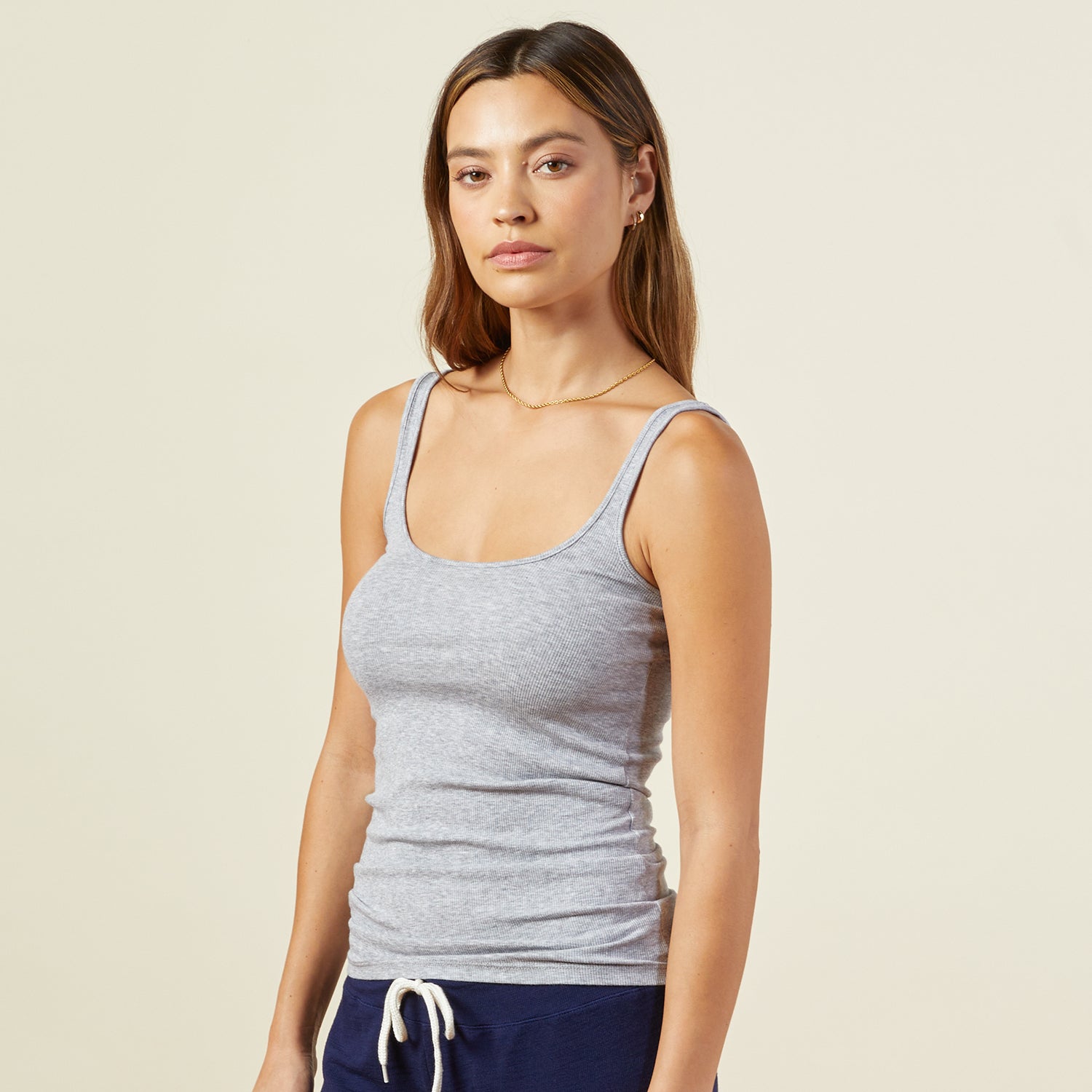 This tank top is the kind of not-so-basic basic that you will continuously reach for. It's made with the softest blend of Supima cotton and micro modal fabric and has the perfect amount of stretch. The scooped neckline and narrow tank make it a perfect layering piece, but it's a winner on its own.