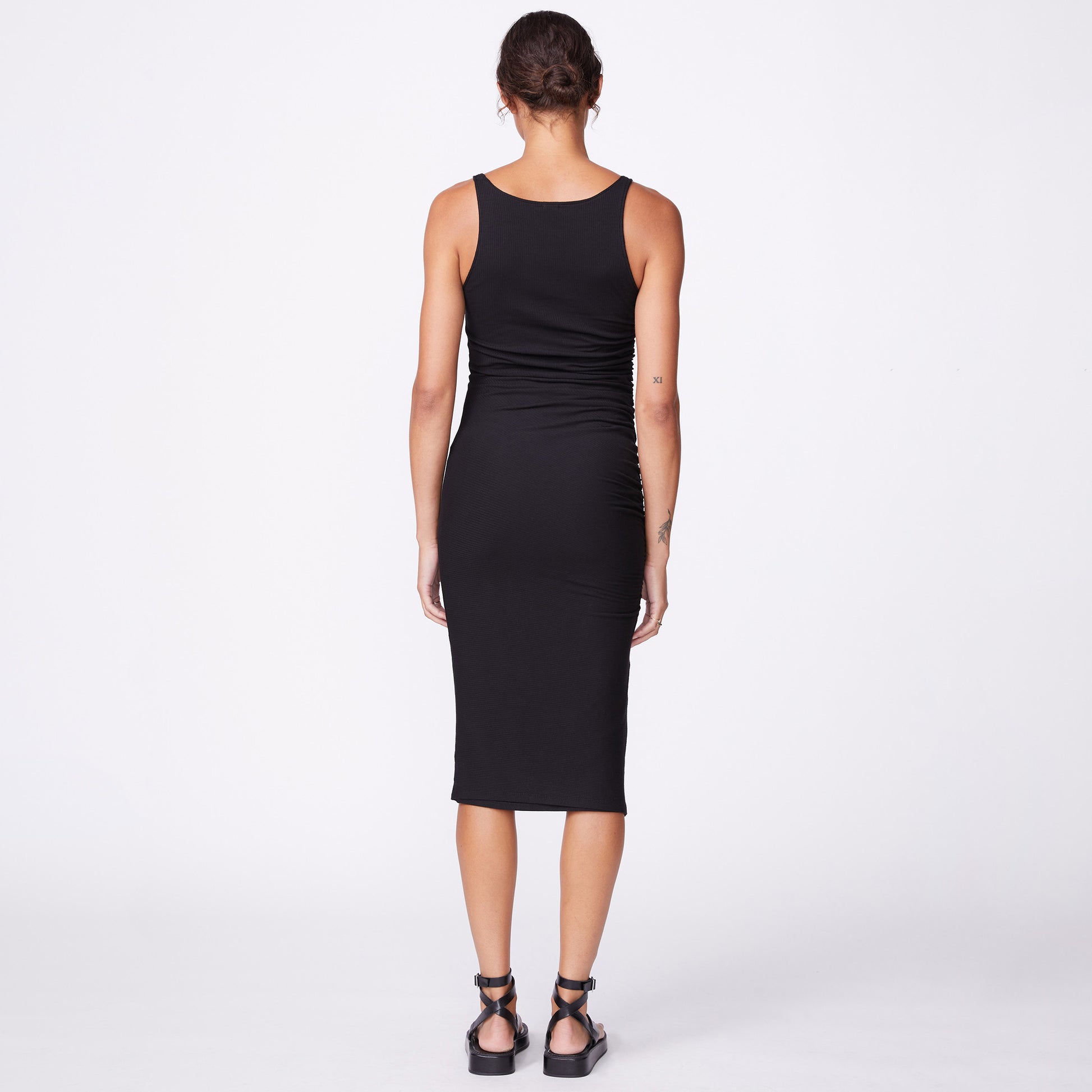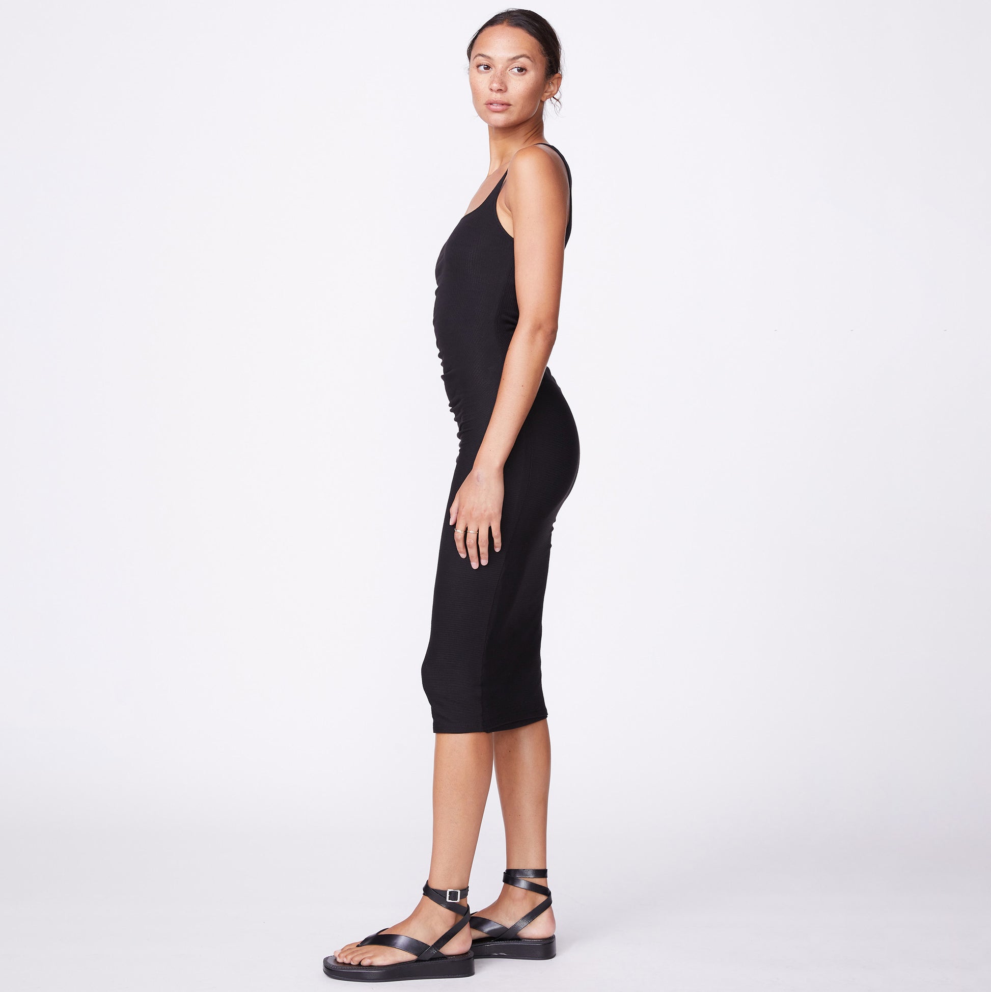 - The Rib Square Neck Dress, we know you’ve been looking for a dress like this for some time now. Our day-to-night dress features a silhouette accentuating, body-hugging fit with shirred side seams, and a square neckline to perfectly frame your decolletage.