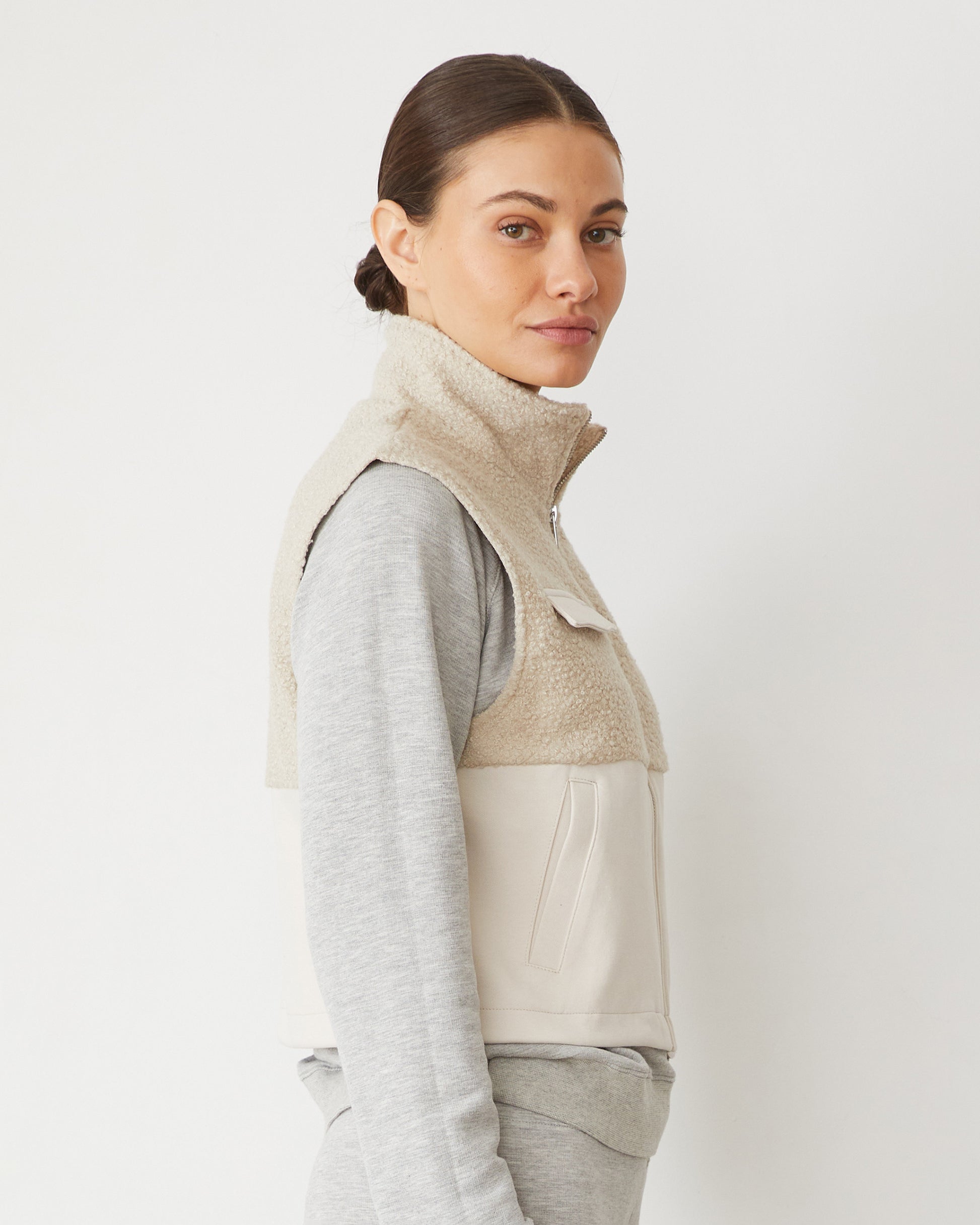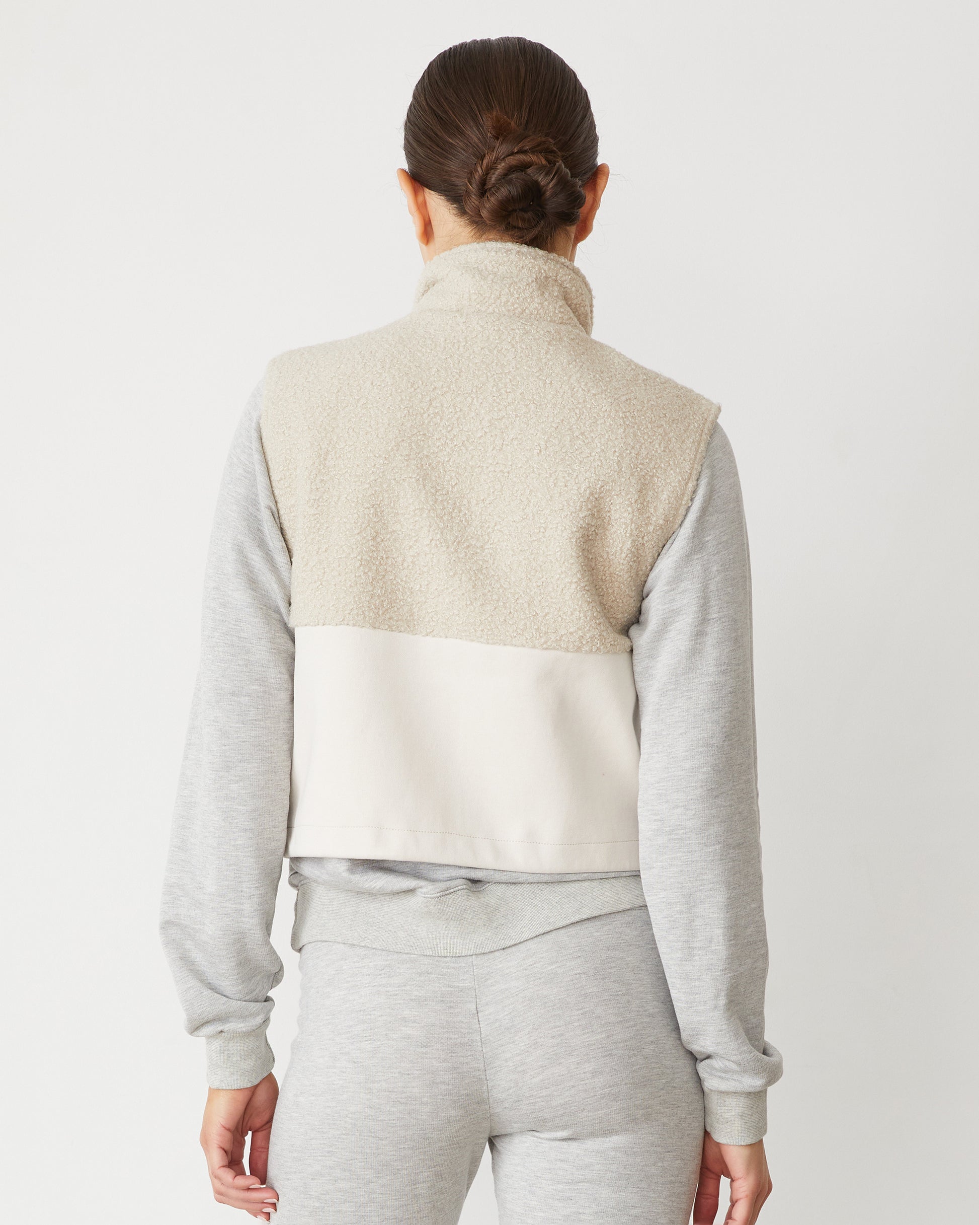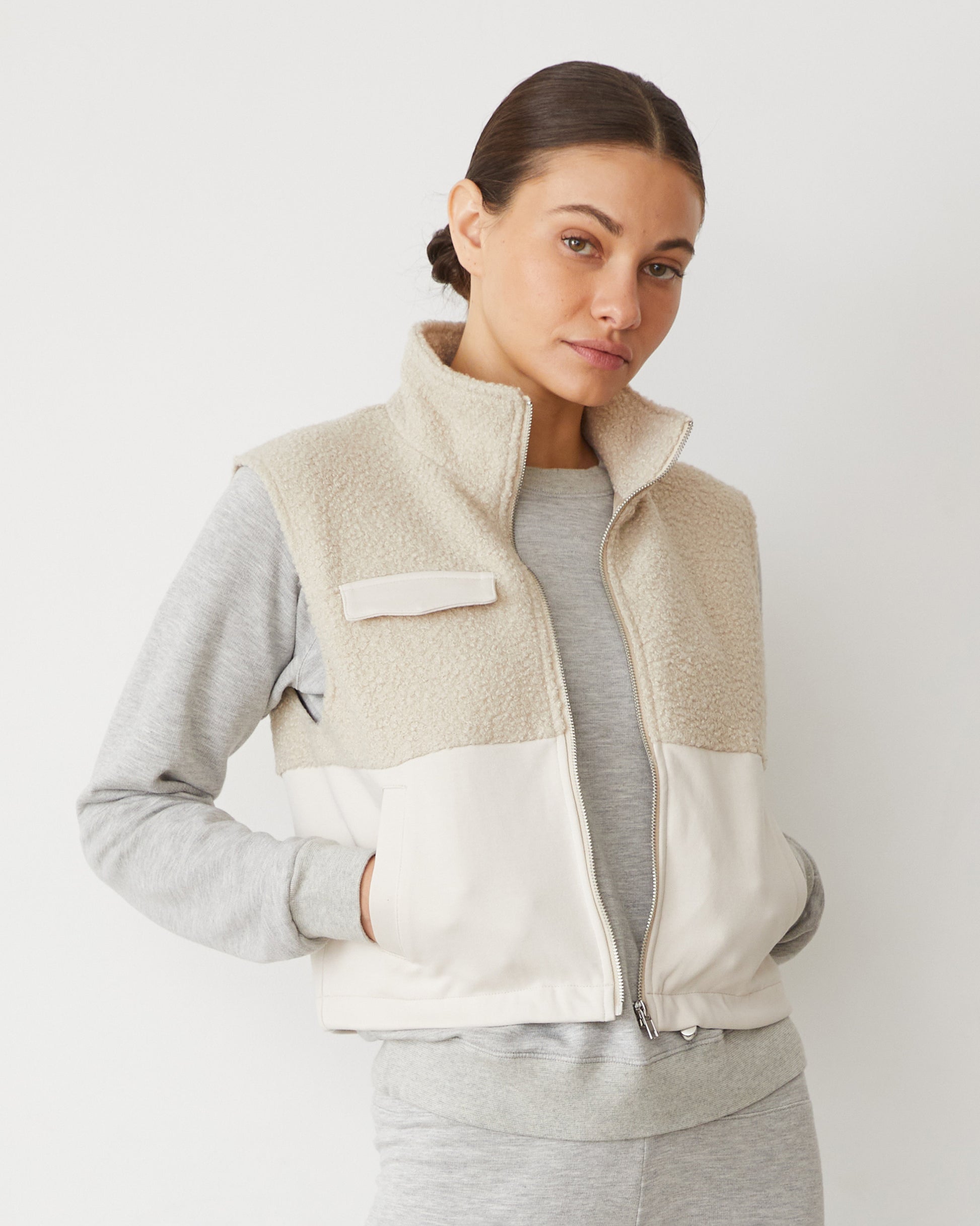 The Sherpa Zip Up Vest embodies California winter style, offering the perfect balance of lightweight warmth and versatile layering. With a fitted, cropped silhouette and a cozy sherpa texture, this vest is the ideal way to stay comfortable and stylish as temperatures drop.