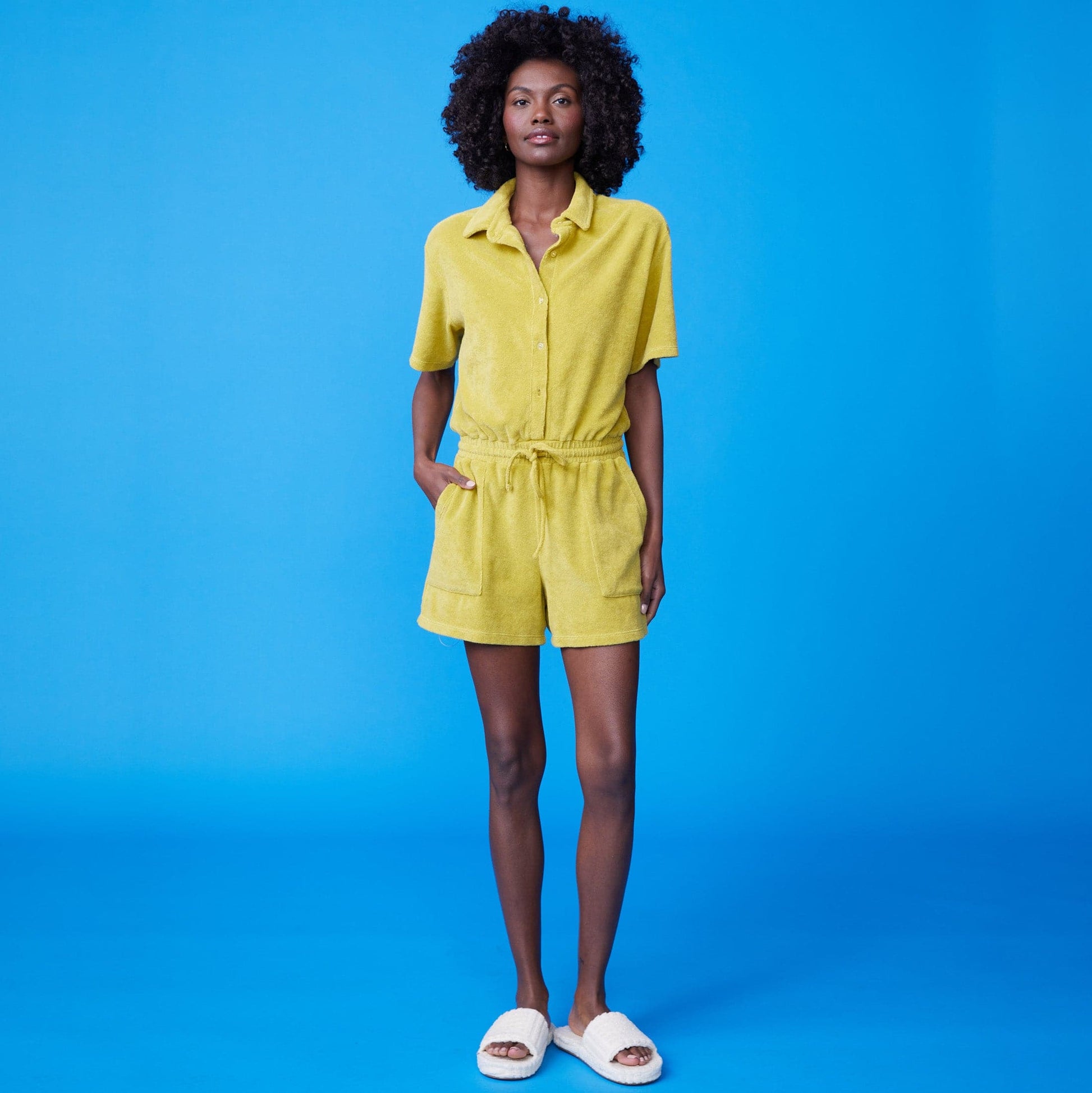 - This season, we're talk terry and we have created the ultimate vacation romper. Made using organic cotton, this relaxed romper has it all: classic collar with button-up front, elastic waist band with matching drawcord. Don't forget about the patch pockets for anything extra.